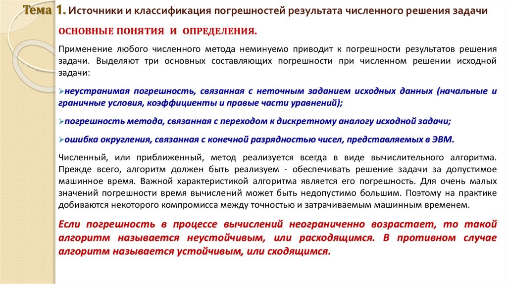 1. Тема 1. Источники и классификация погрешностей результата численного решения задачи
