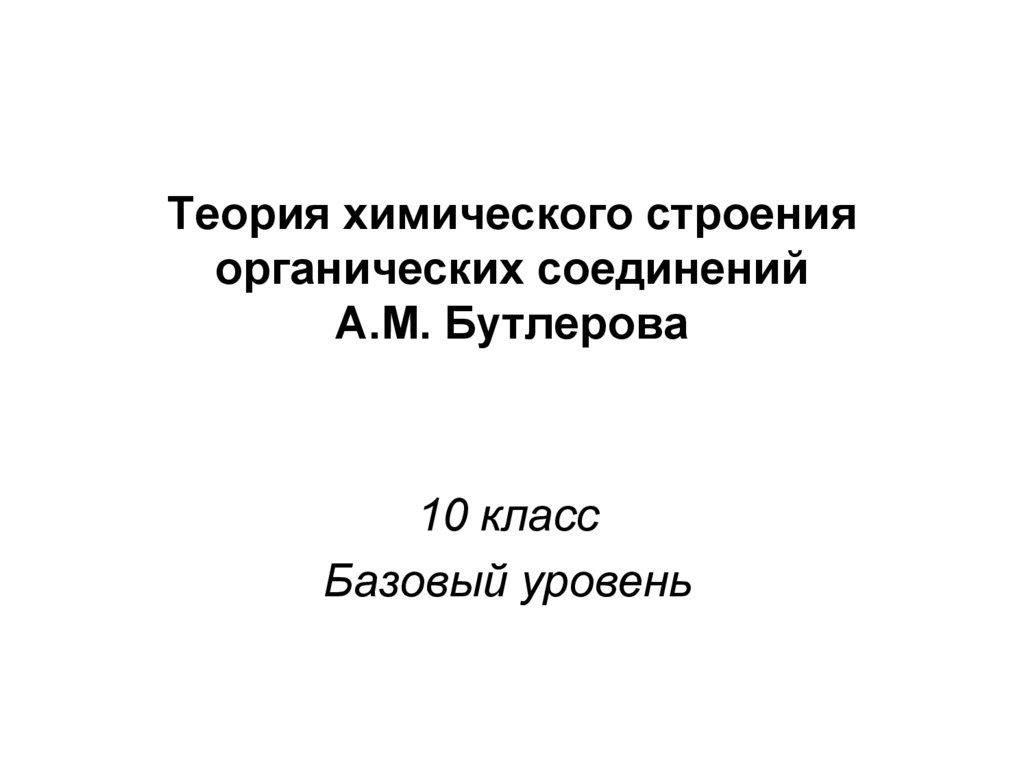 1. Теория химического строения органических соединений А.М. Бутлерова