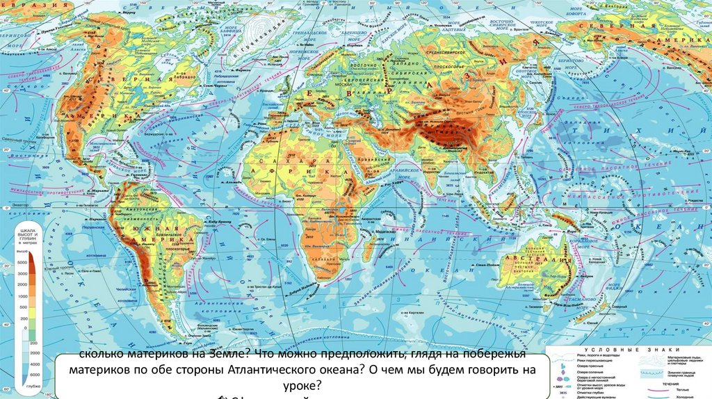 сколько материков на Земле? Что можно предположить, глядя на побережьяматериков по обе стороны Атлантического океана? О чем мы будем говорить на