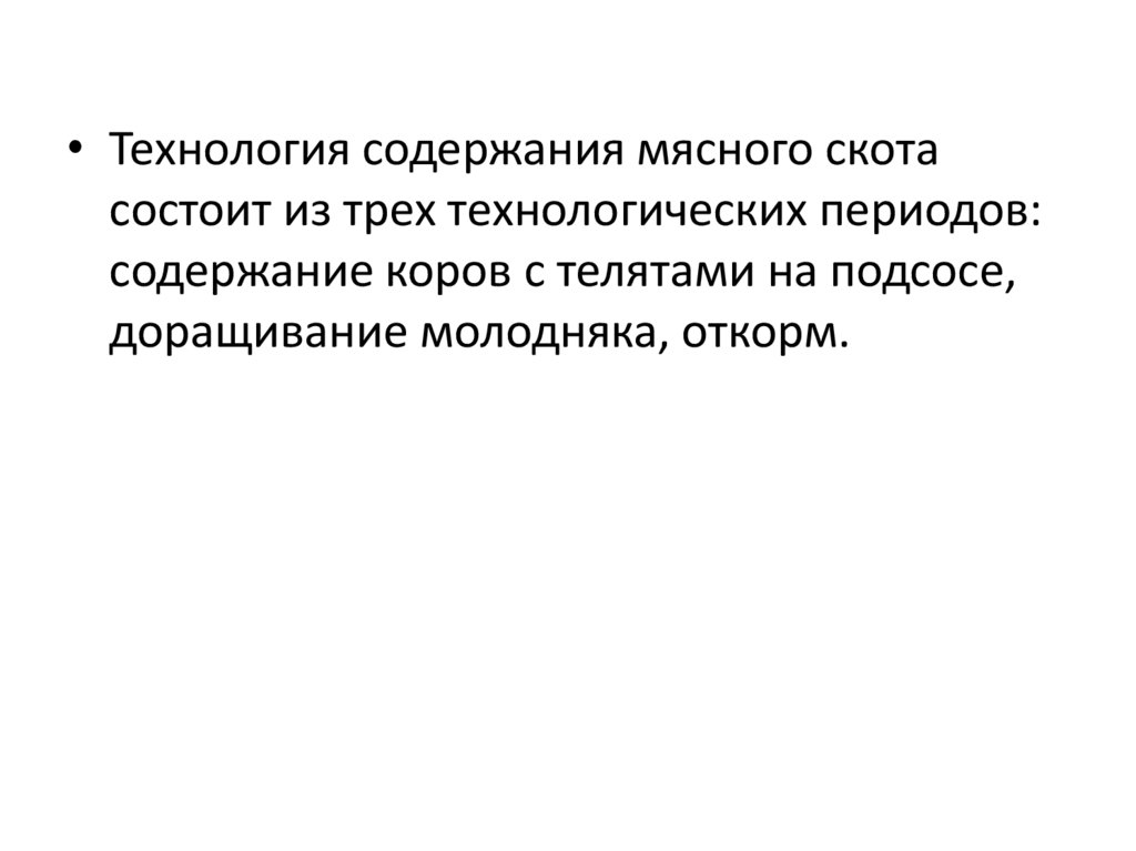 • Технология содержания мясного скотасостоит из трех технологических периодов: