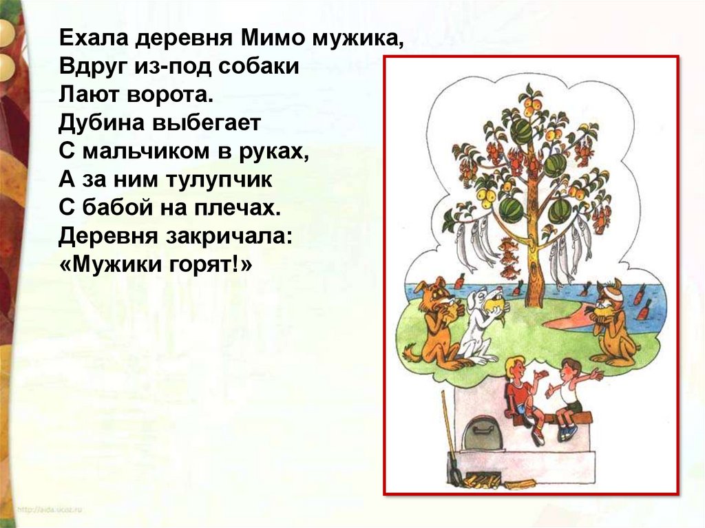 Ехала деревня Мимо мужика,Вдруг из-под собаки