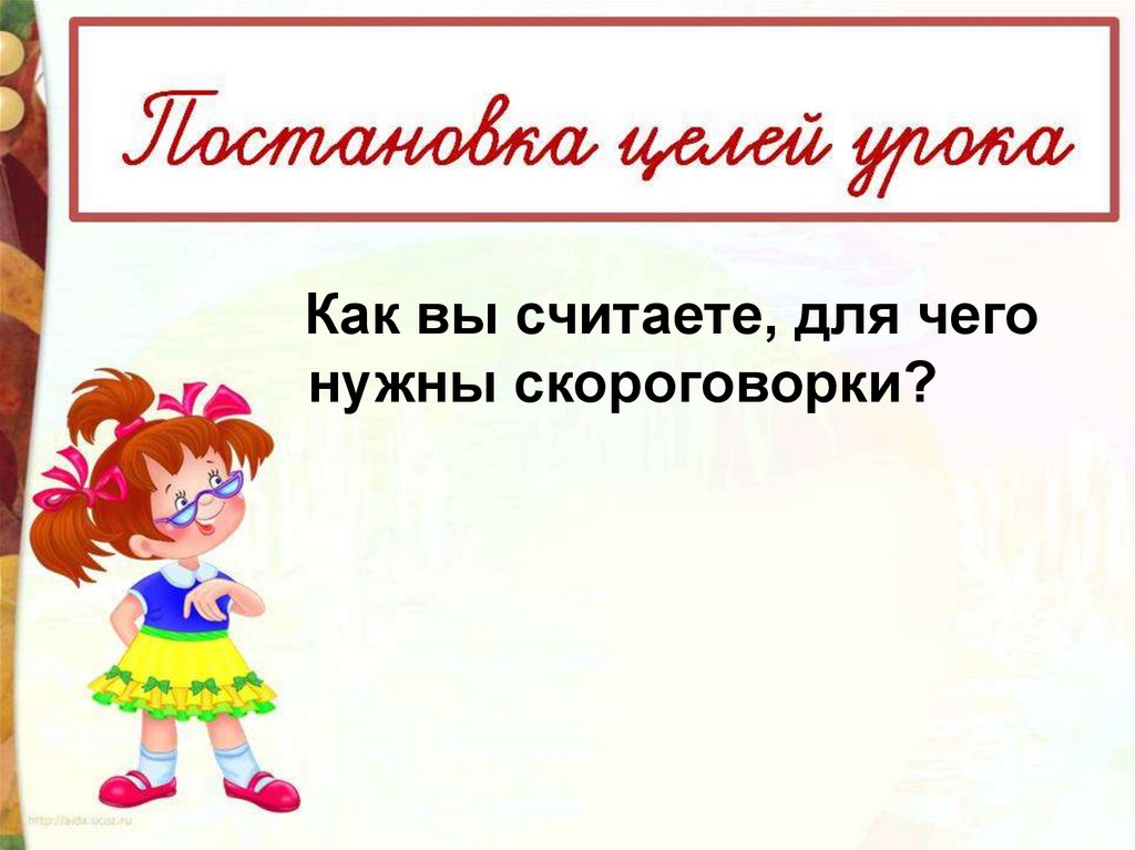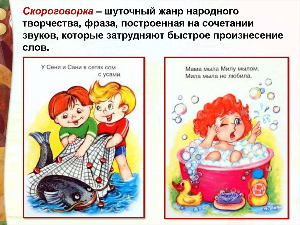Скороговорка – шуточный жанр народноготворчества, фраза, построенная на сочетании
