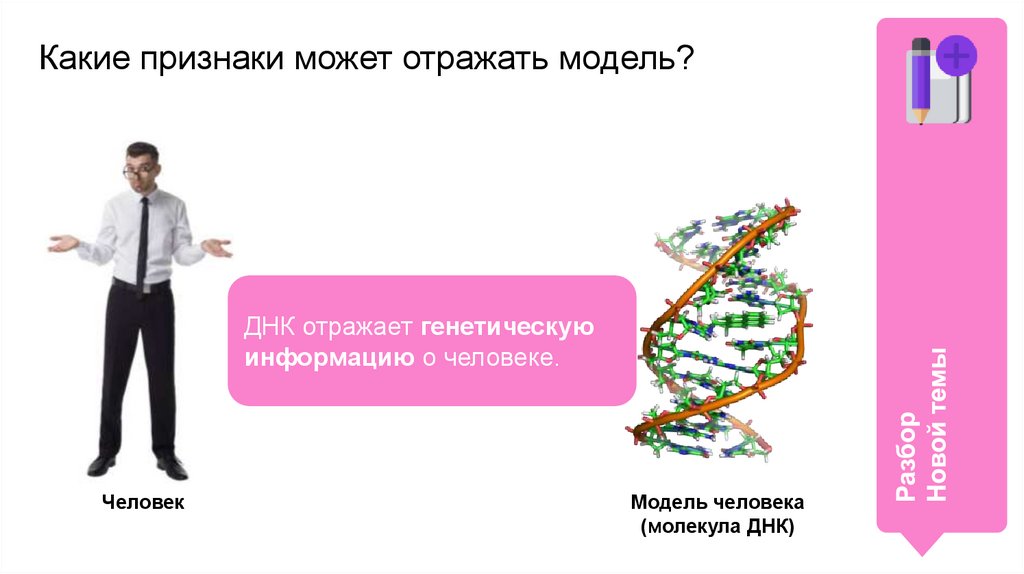 Какие признаки может отражать модель?ДНК отражает генетическую