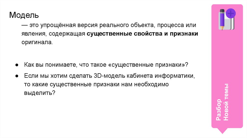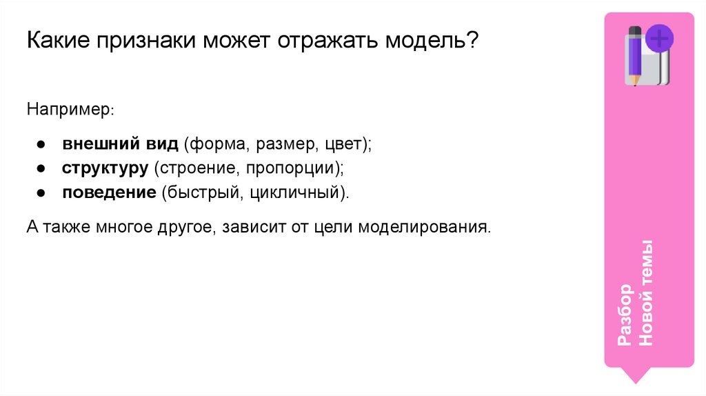 Какие признаки может отражать модель?Рисунок отражает внешний