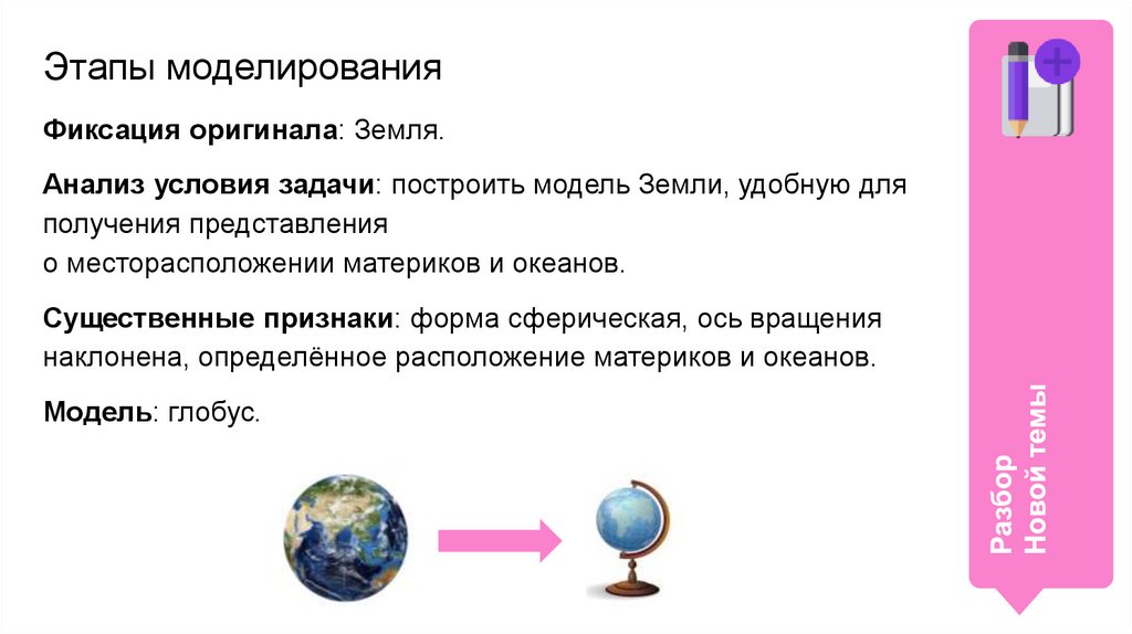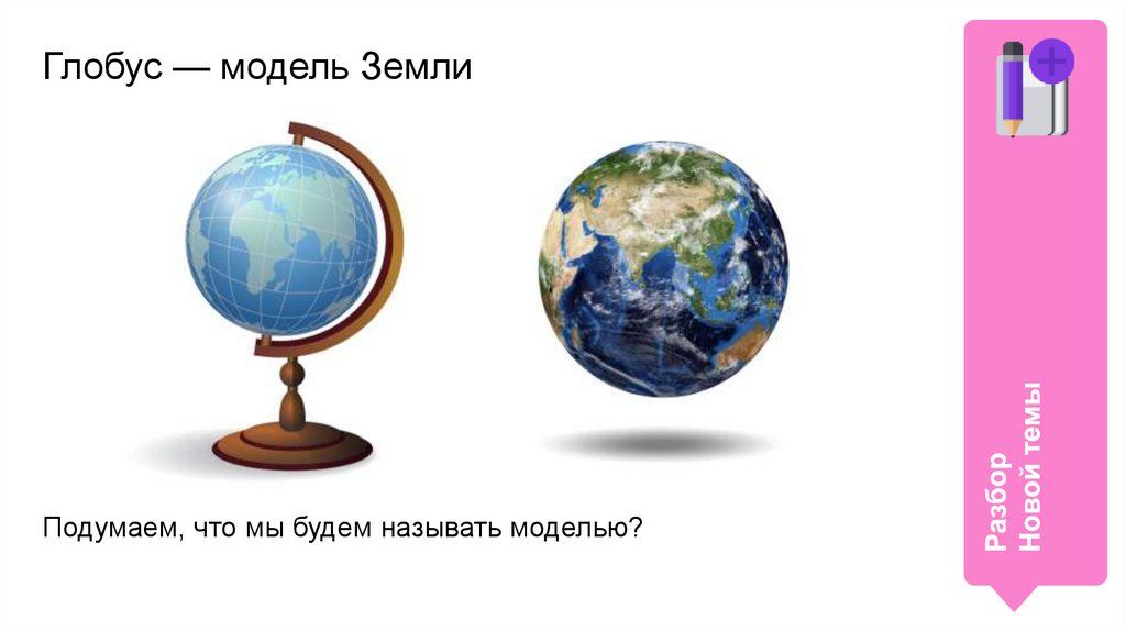 Глобус — модель ЗемлиПодумаем, что мы будем называть моделью?