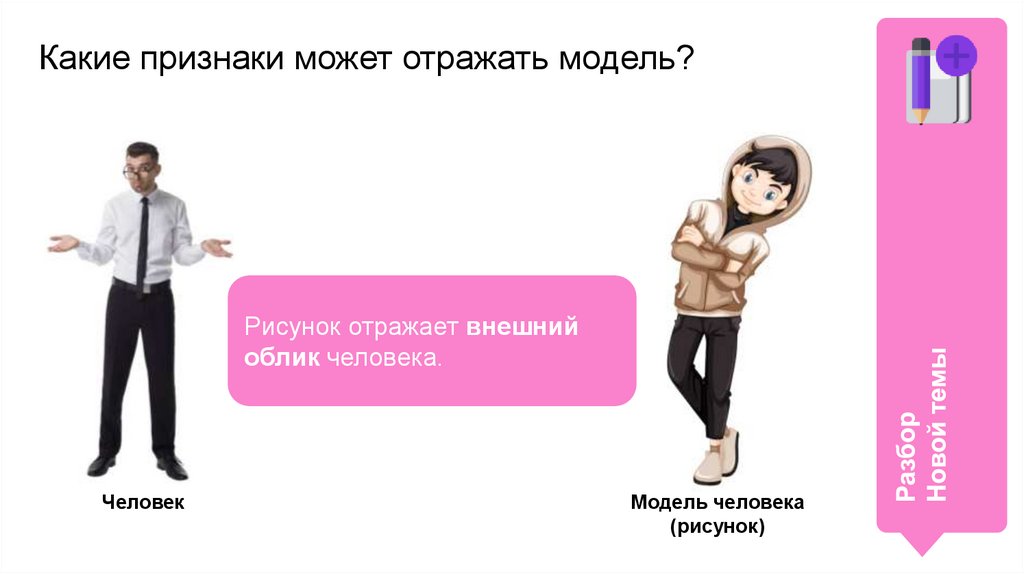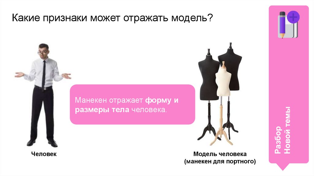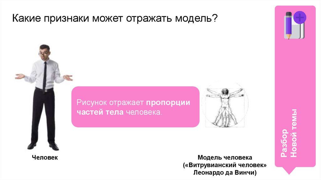 Какие признаки может отражать модель?Рисунок отражает пропорции