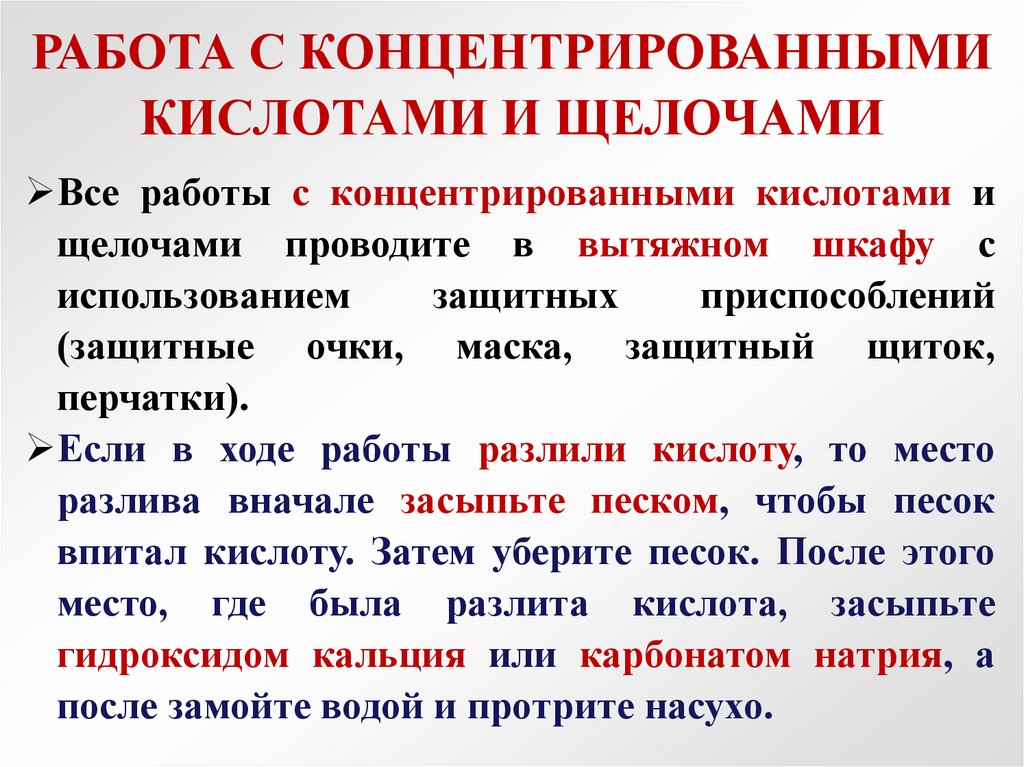 РАБОТА С КОНЦЕНТРИРОВАННЫМИКИСЛОТАМИ И ЩЕЛОЧАМИ