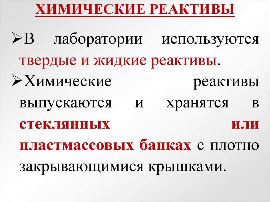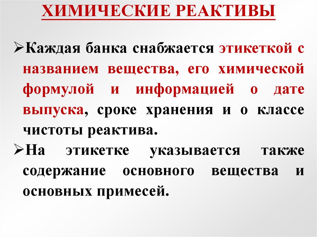 ХИМИЧЕСКИЕ РЕАКТИВЫКаждая банка снабжается этикеткой с