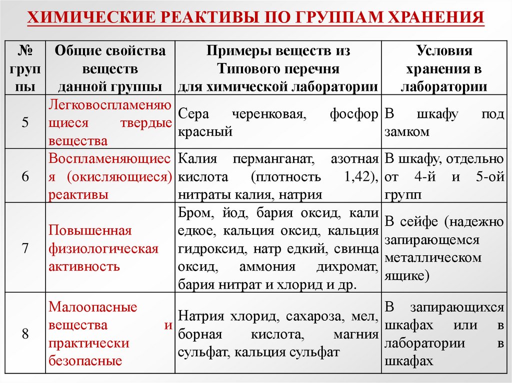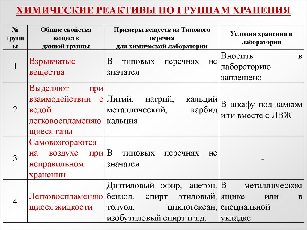 ХИМИЧЕСКИЕ РЕАКТИВЫ ПО ГРУППАМ ХРАНЕНИЯ№ Общие свойства