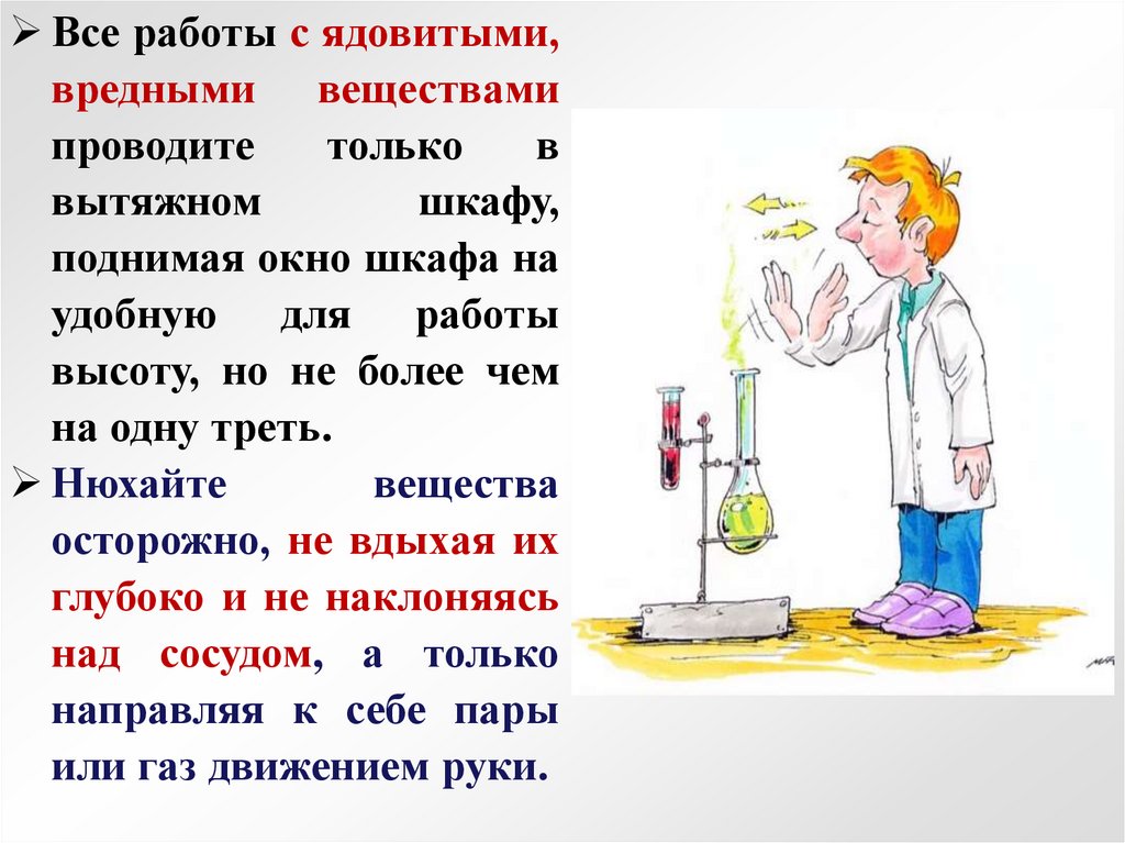 щелочами проводите в вытяжном шкафу с