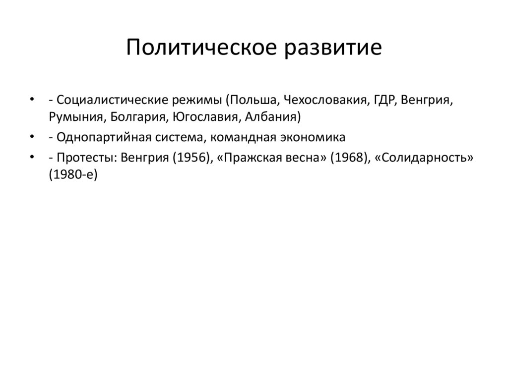 Политическое развитие• - Социалистические режимы (Польша, Чехословакия, ГДР, Венгрия,