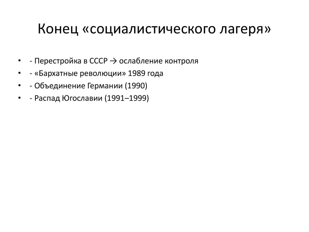 Конец «социалистического лагеря»- Перестройка в СССР → ослабление контроля