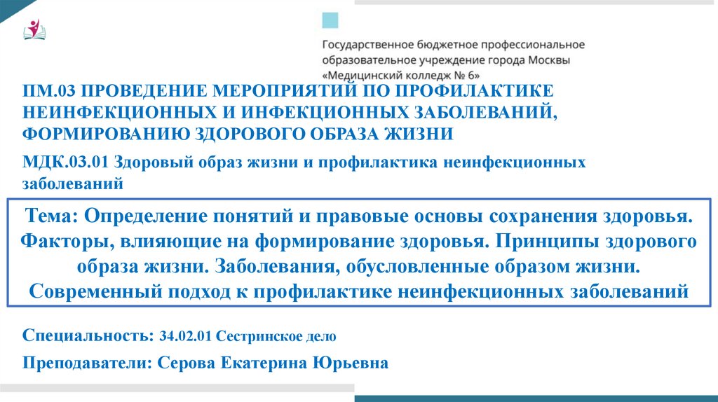 МДК.03.01 Здоровый образ жизни и профилактика неинфекционных