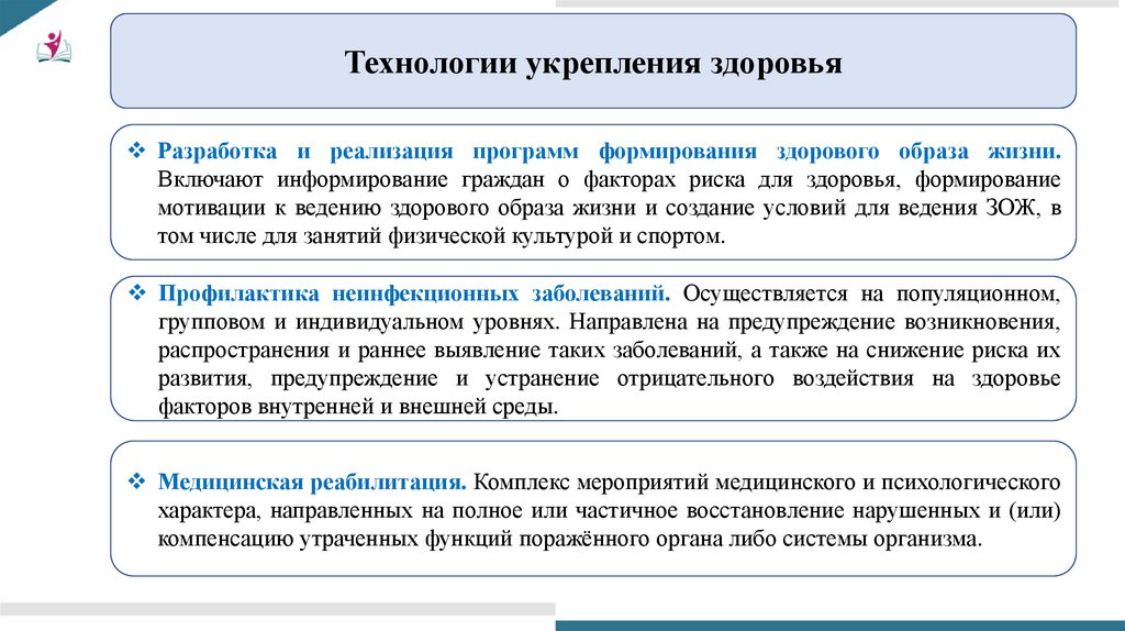 Технологии укрепления здоровьяРазработка и реализация программ формирования здорового образа жизни.