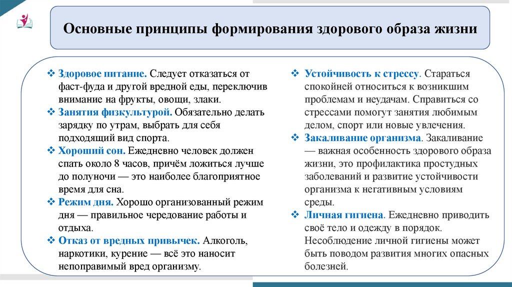 Факторы, влияющие на формирование здоровья. Принципы здорового