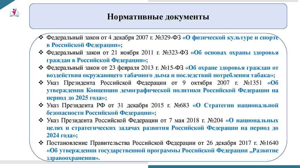 Нормативные документыФедеральный закон от 4 декабря 2007 г. №329-ФЗ «О физической культуре и спорте