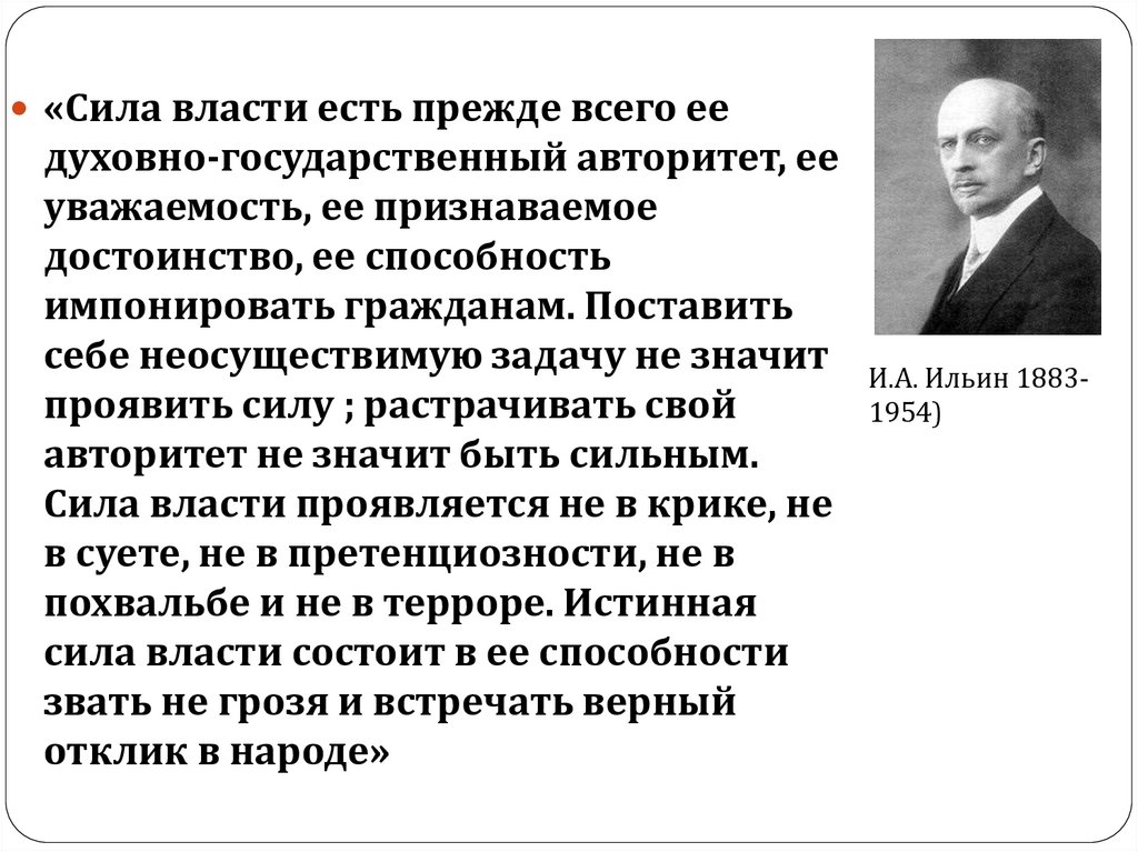 «Сила власти есть прежде всего еедуховно-государственный авторитет, ее