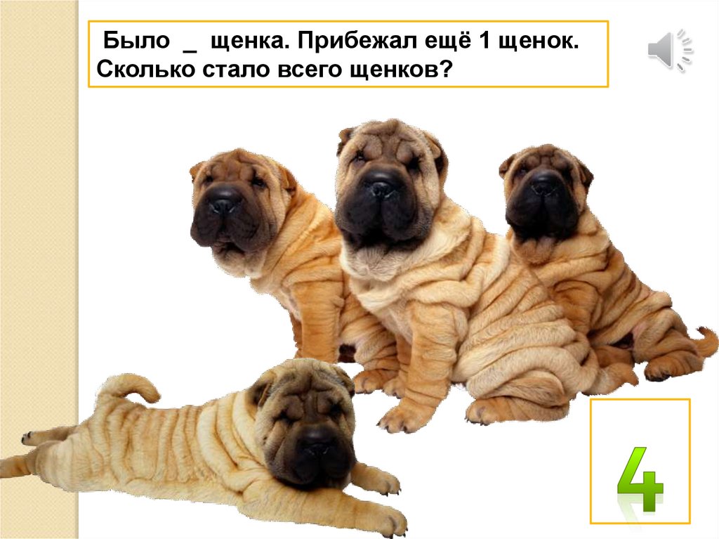 Было _ щенка. Прибежал ещё 1 щенок.Сколько стало всего щенков?