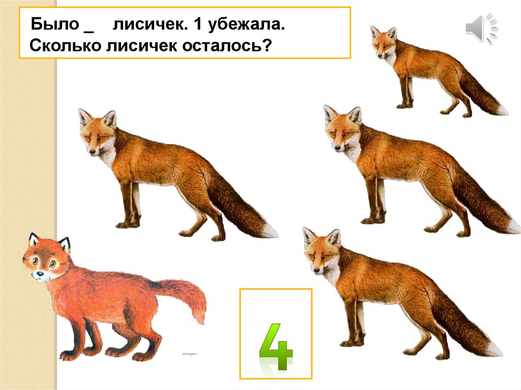 Было _ лисичек. 1 убежала.Сколько лисичек осталось?