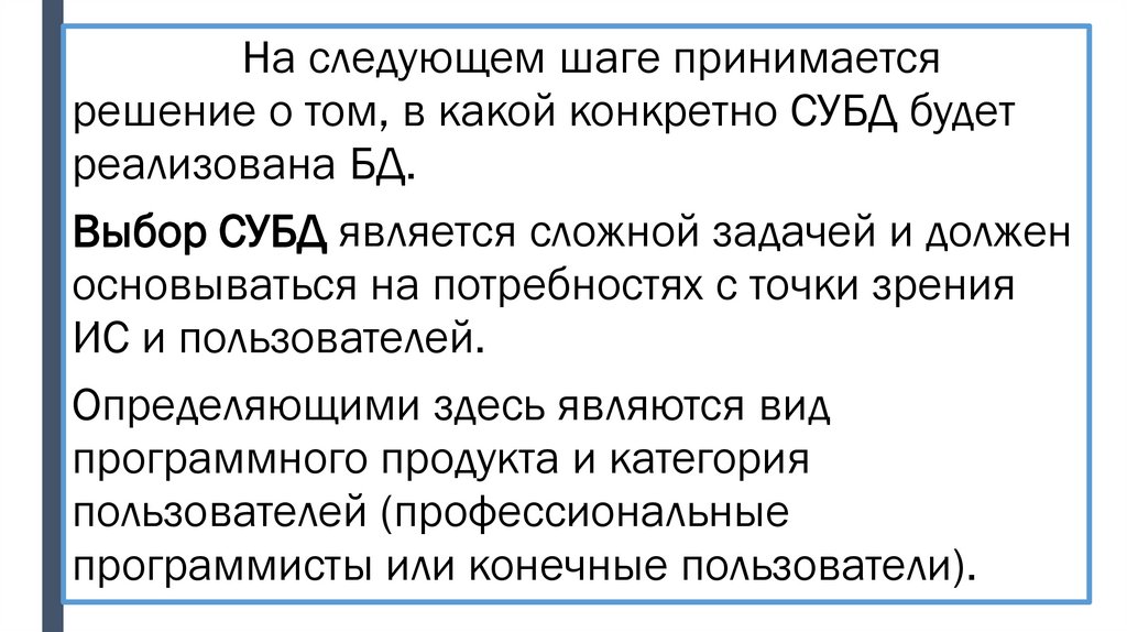 данных, которая поддерживается выбранной СУБД. Логическая модель не зависит от конкретной СУБД и может быть реализована на