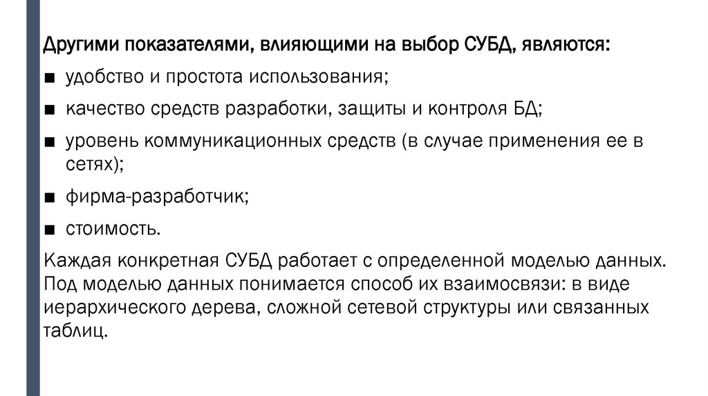 представлена в БД. Эта модель не зависит от конкретной используемой
