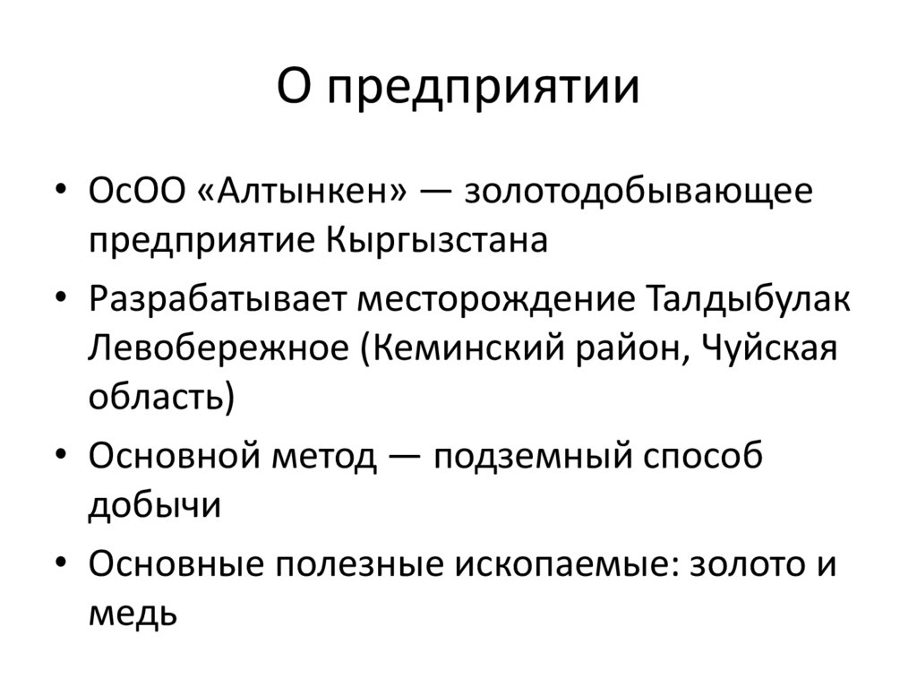 О предприятии• ОсОО «Алтынкен» — золотодобывающее