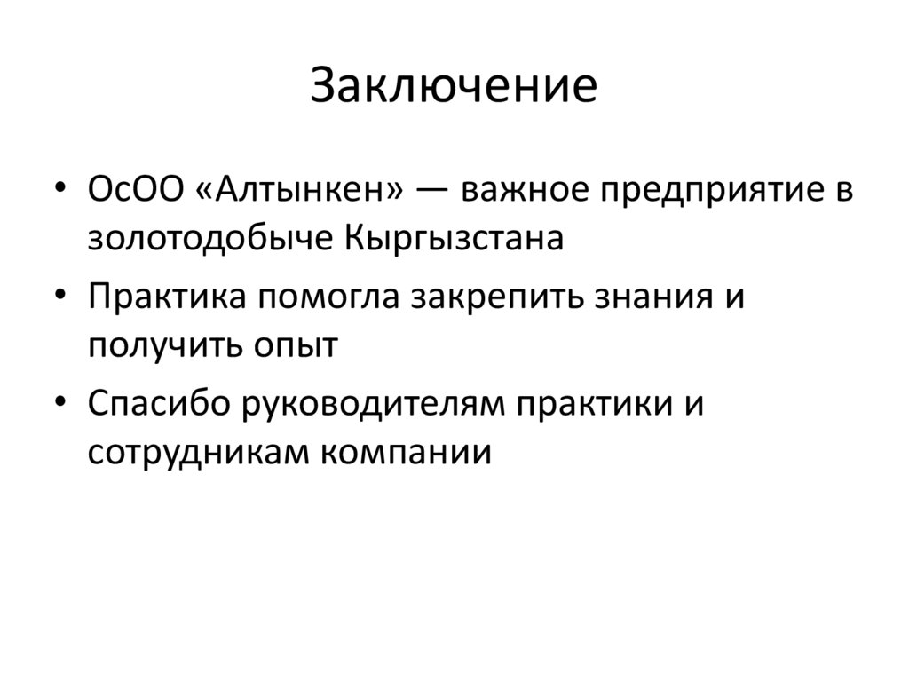 Заключение• ОсОО «Алтынкен» — важное предприятие в