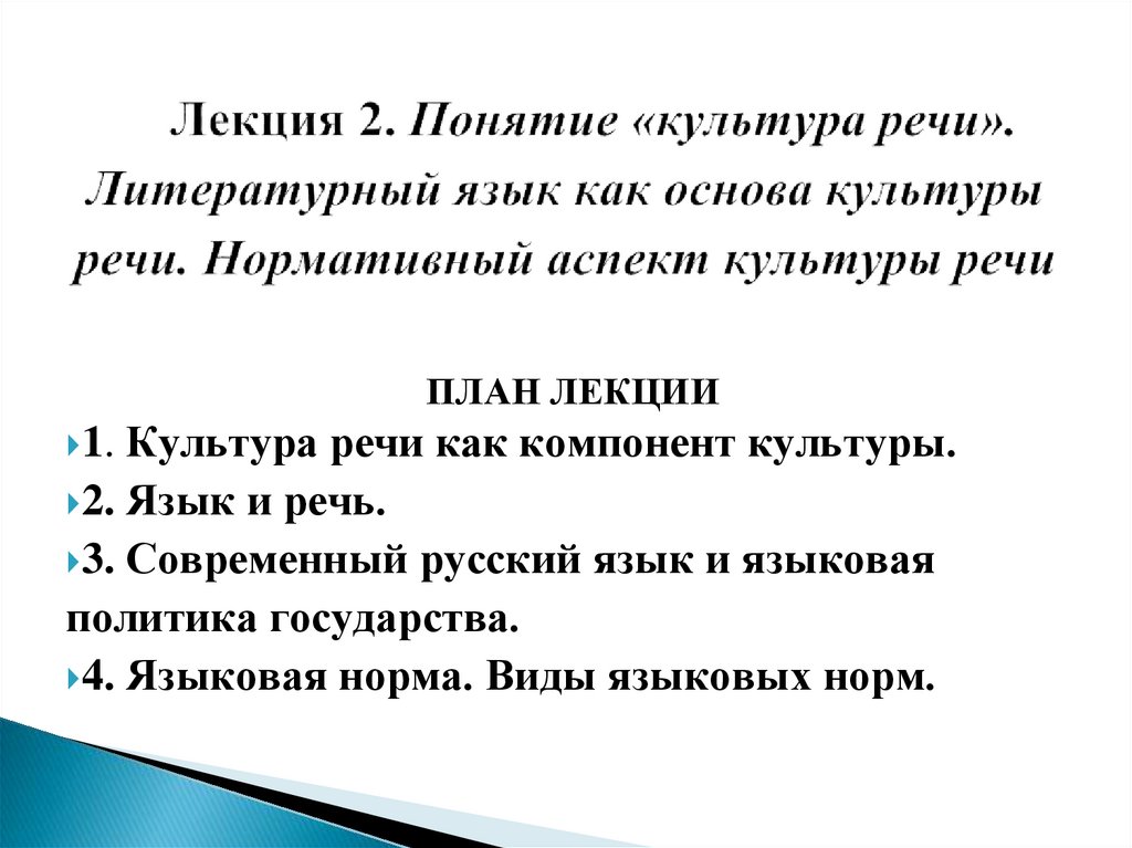 1. Лекция 2. Понятие «культура речи». Литературный язык как основа культуры речи. Нормативный аспект культуры речи