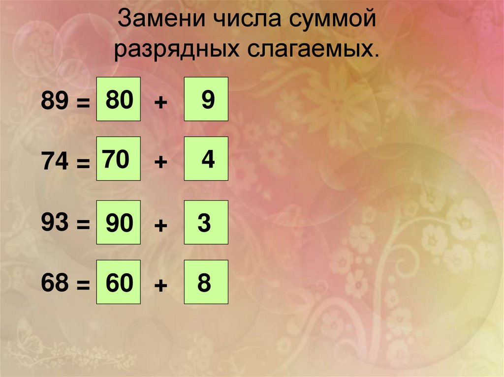 Замени числа суммойразрядных слагаемых.