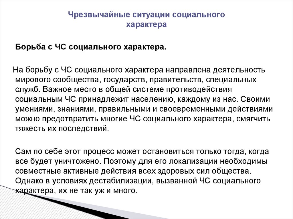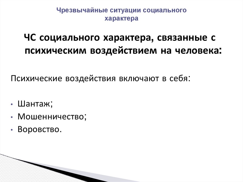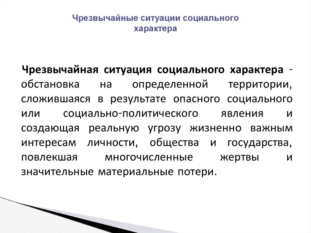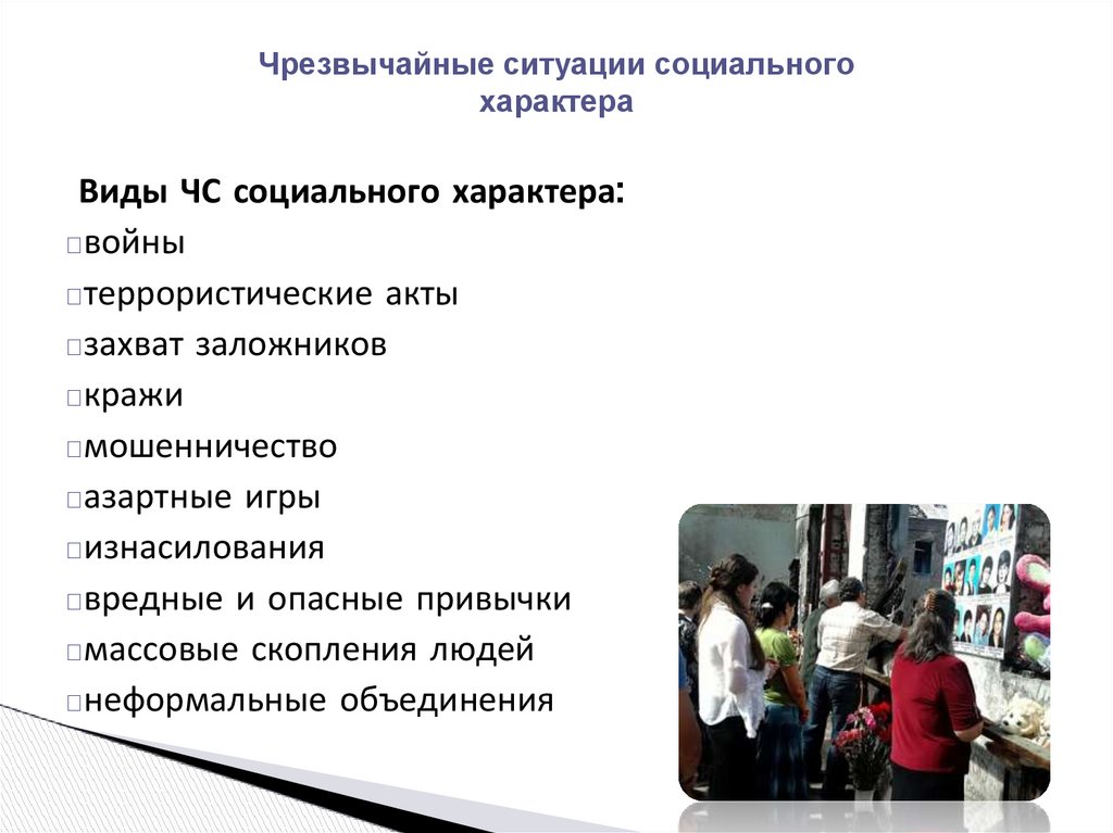 Чрезвычайные ситуации социального характераЧС социального характера, связанные с