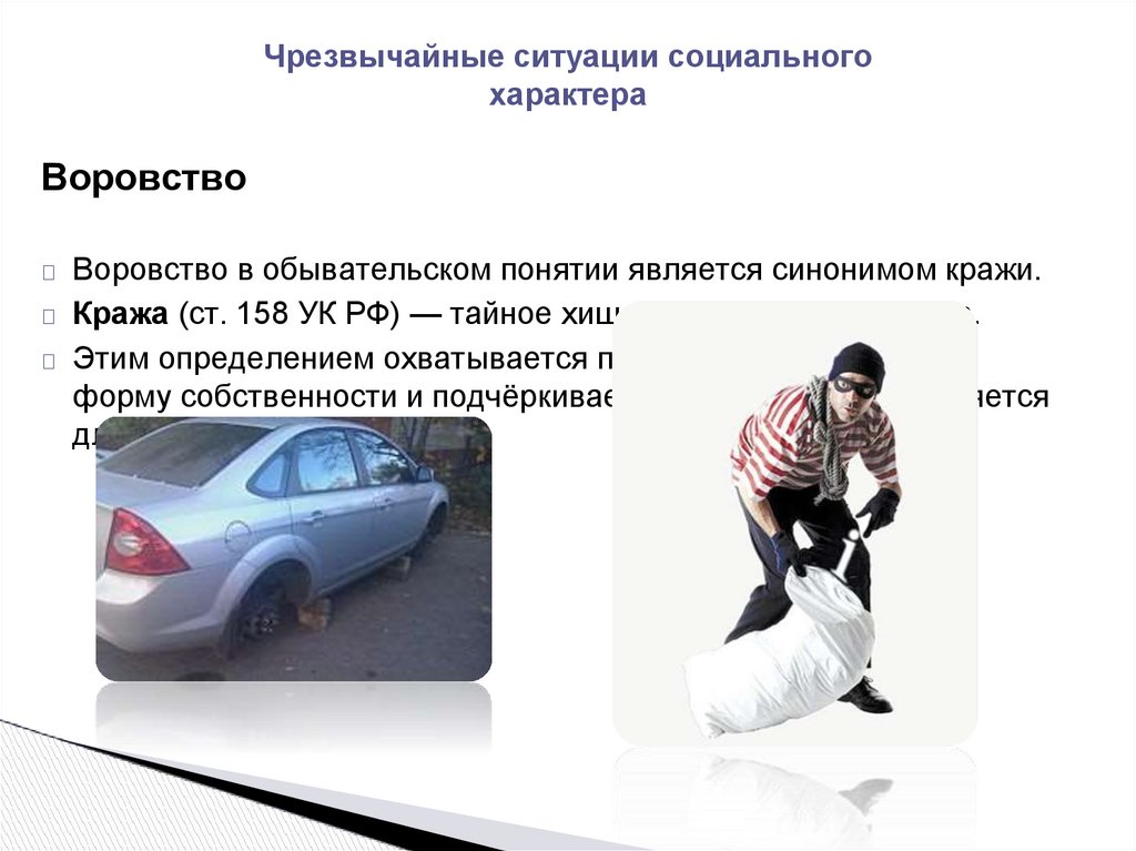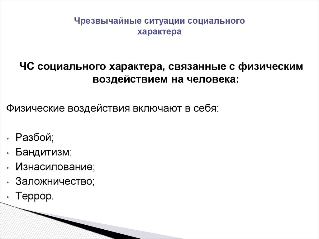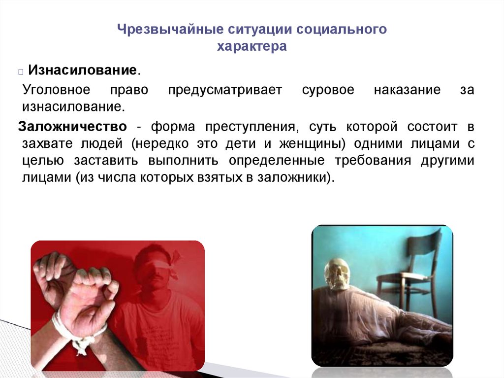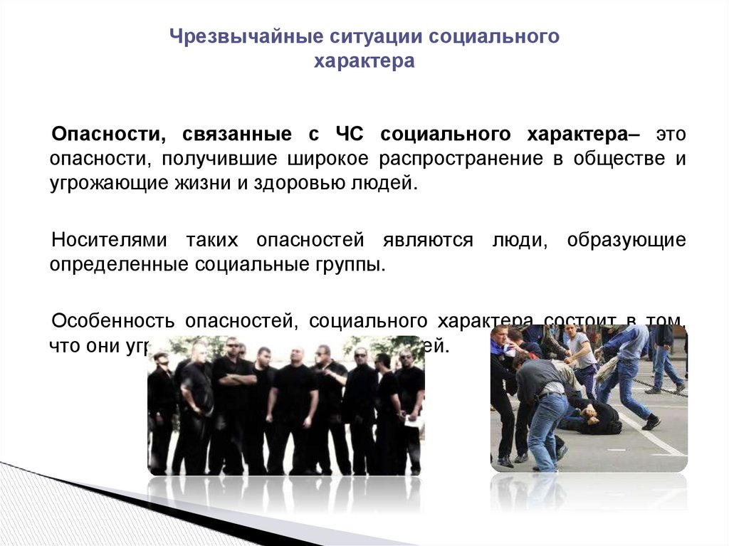 Чрезвычайные ситуации социального характераЧС социального характера, связанные с