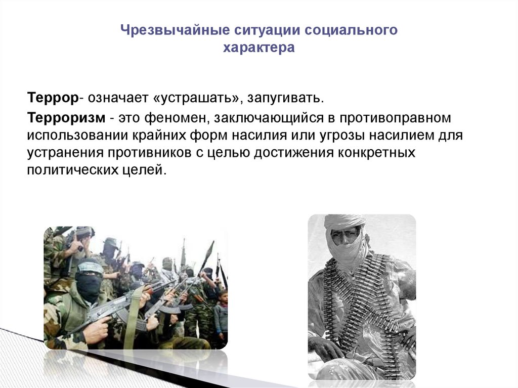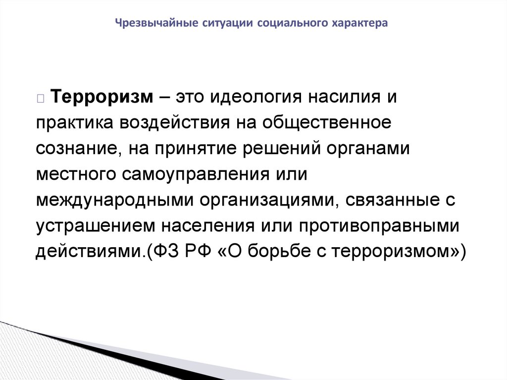Чрезвычайные ситуации социального характераТерроризм – это идеология насилия и
