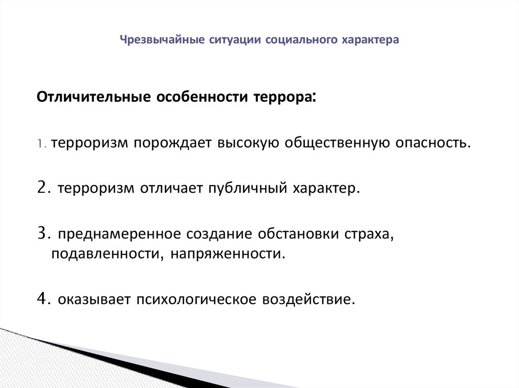 Чрезвычайные ситуации социального характераОтличительные особенности террора: