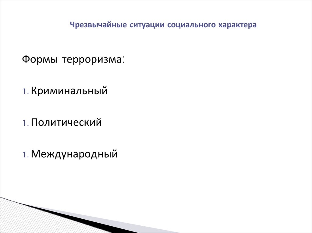 Чрезвычайные ситуации социального характераФормы терроризма: