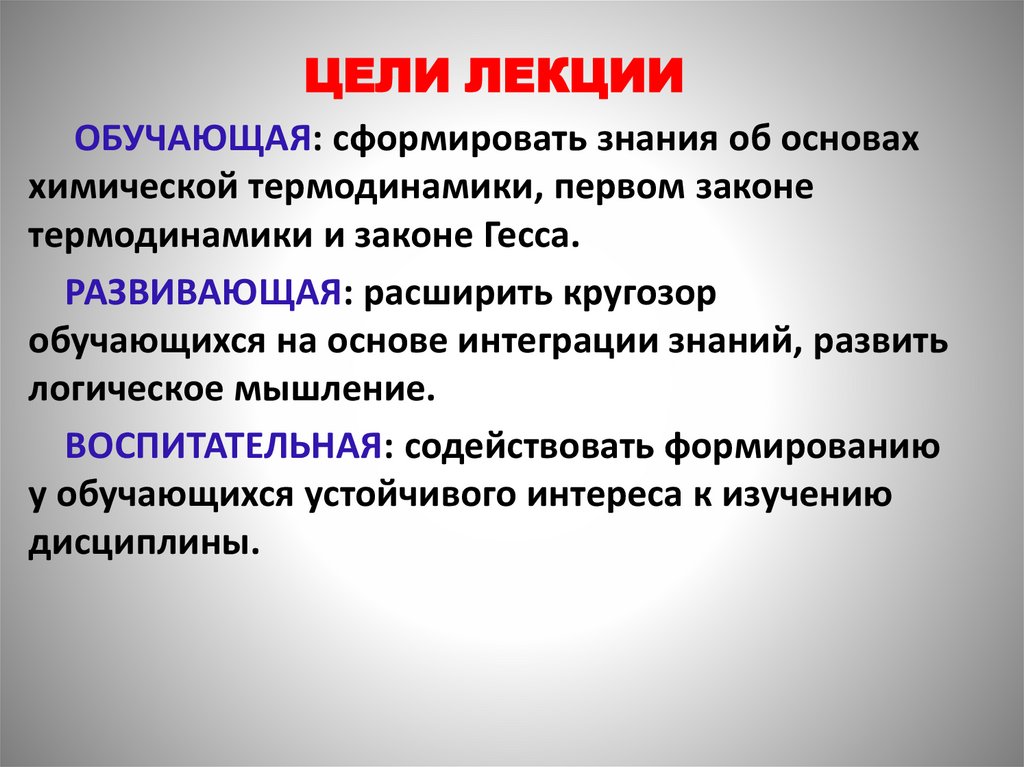 ЦЕЛИ ЛЕКЦИИОБУЧАЮЩАЯ: сформировать знания об основах