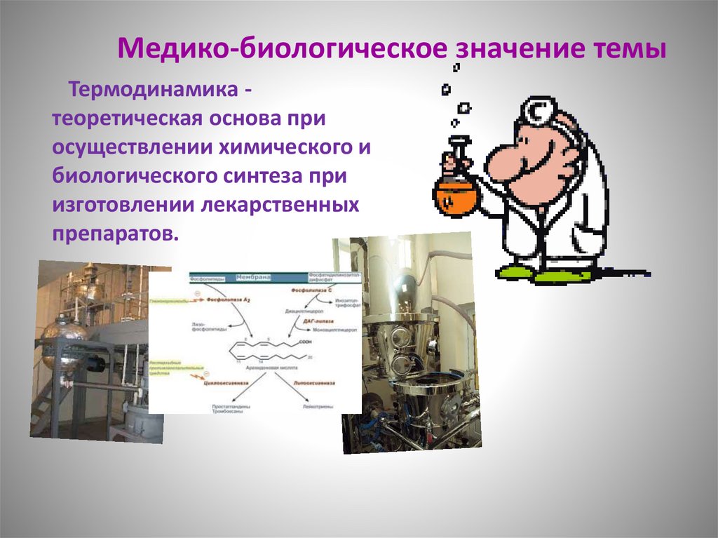 Медико-биологическое значение темыТермодинамика теоретическая основа при