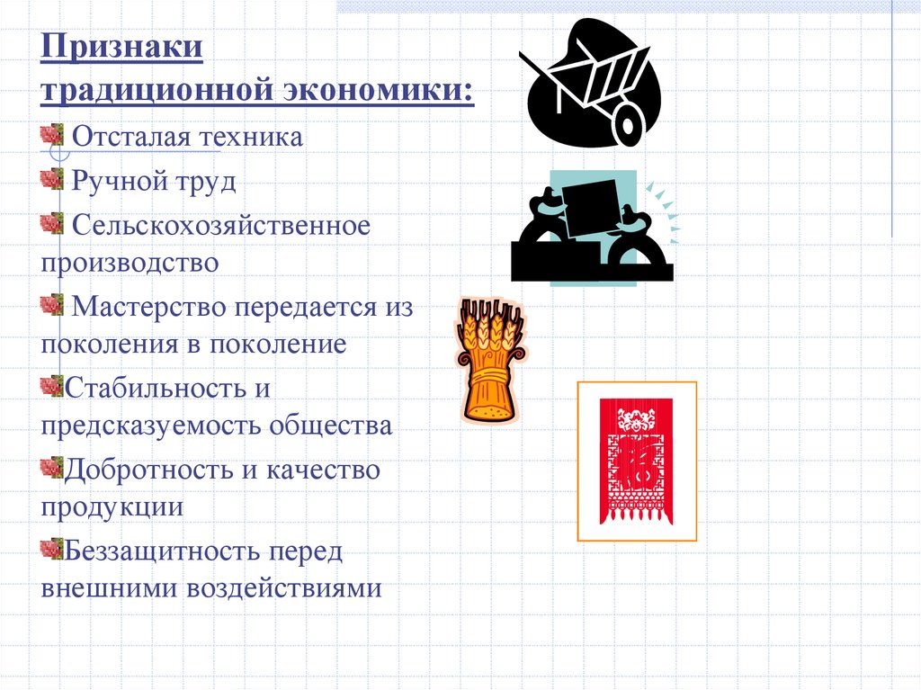7. Традиционная система – способ организации экономической жизни, при которой земля и капитал находятся в общем владении, а