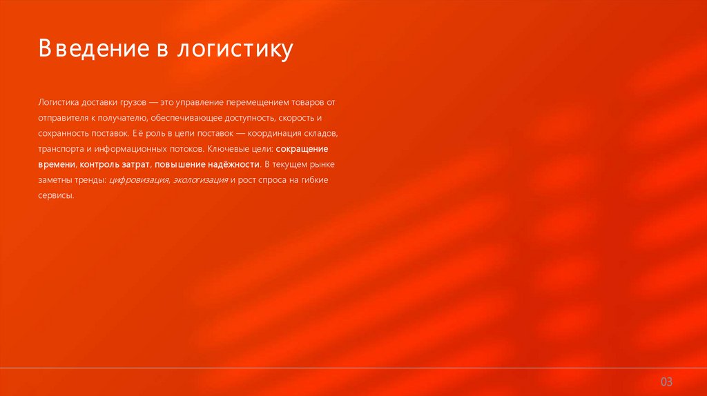 В ведение в логистикуЛогистика доставки грузов — это управление перемещением товаров от