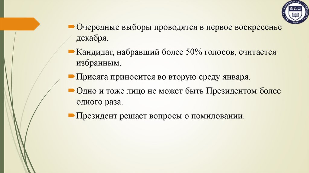 Очередные выборы проводятся в первое воскресеньедекабря.