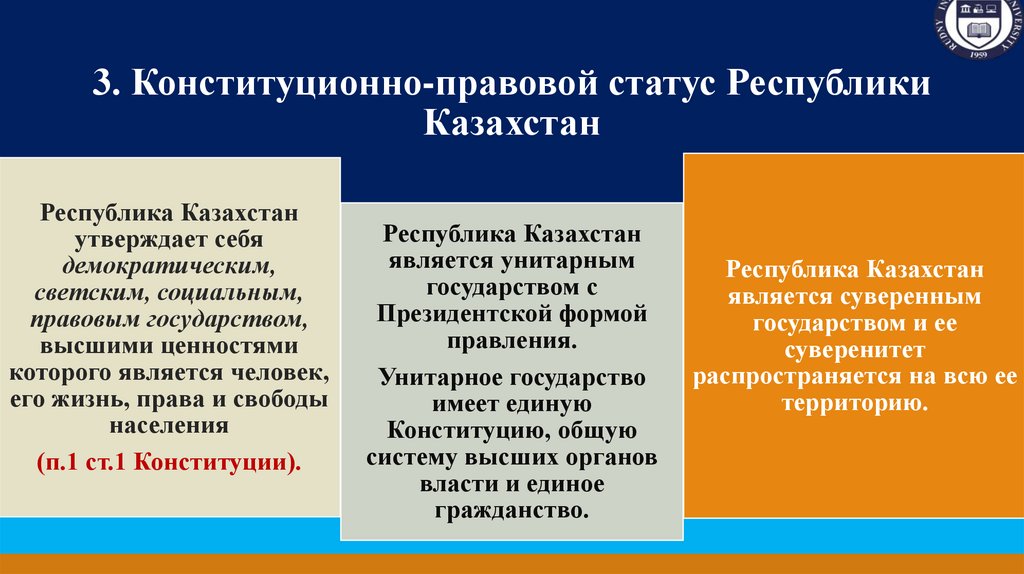 3. Конституционно-правовой статус РеспубликиКазахстан