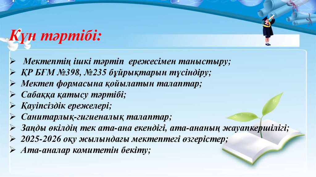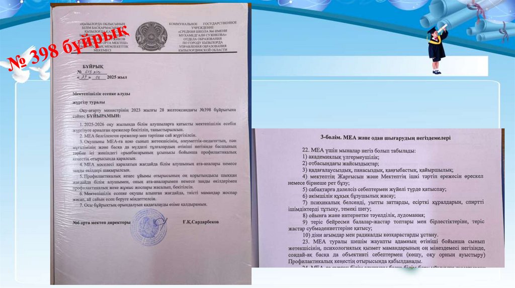 ҚР БҒМ №398, №235 бұйрықтарын түсіндіру;