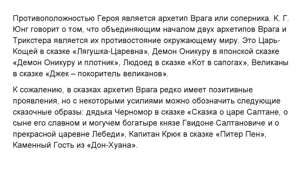 К сожалению, в сказках архетип Врага редко имеет позитивные