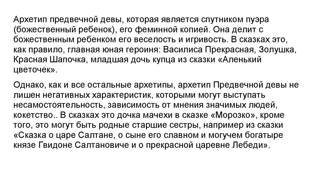 Однако, как и все остальные архетипы, архетип Предвечной девы не