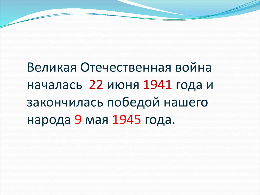 Великая Отечественная войнаначалась 22 июня 1941 года и
