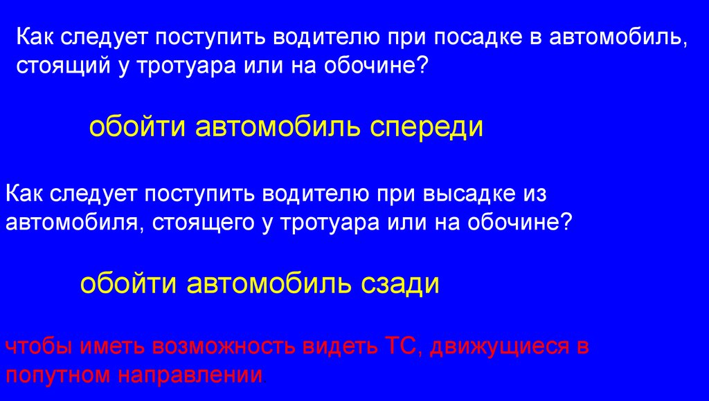 Как следует поступить водителю при посадке в автомобиль,стоящий у тротуара или на обочине?