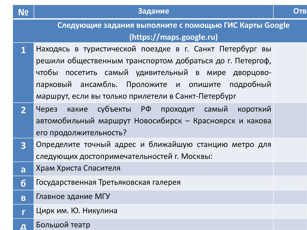 Следующие задания выполните с помощью ГИС Карты Google