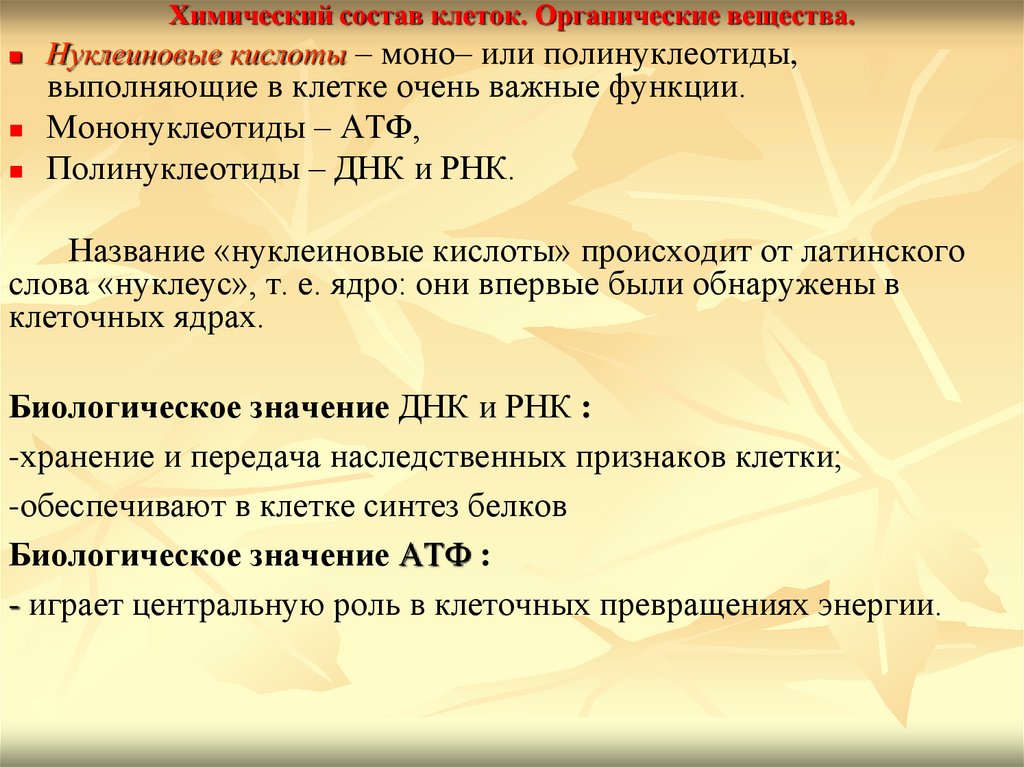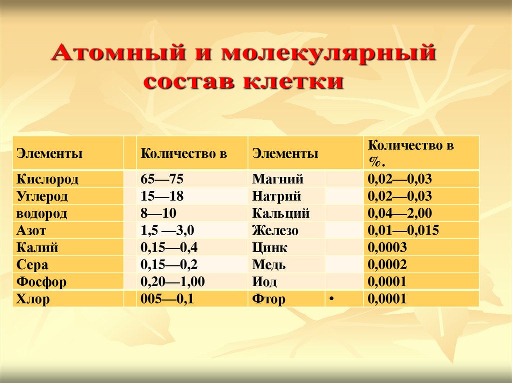 Химический состав клеткиЛекция 1