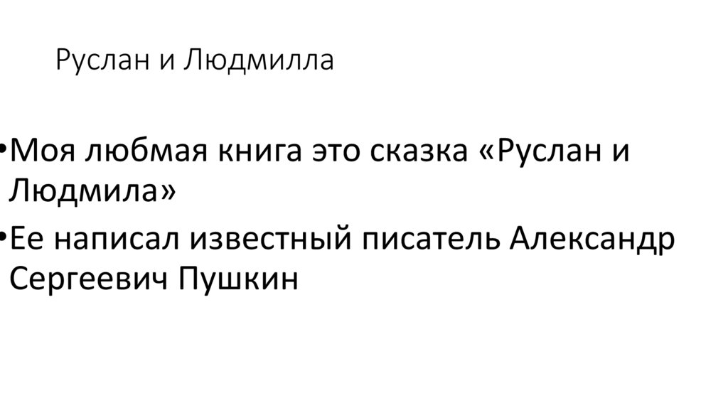 Руслан и Людмилла•Моя любмая книга это сказка «Руслан и