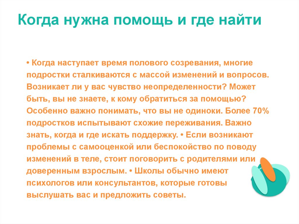 Когда нужна помощь и где найти• Когда наступает время полового созревания, многие