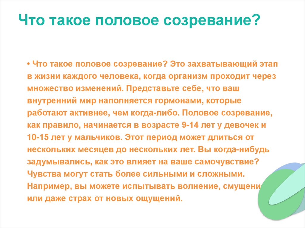 Что такое половое созревание?• Что такое половое созревание? Это захватывающий этап